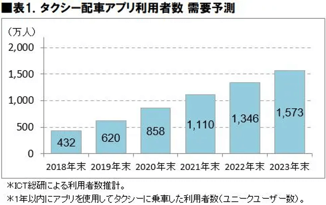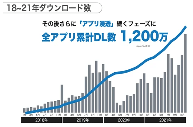 これに加え、これからのタクシー需要を予測するうえでもうひとつ大きな事実があります。それはタクシー配車アプリのダウンロード数の急増です。以下のグラフをご覧ください。